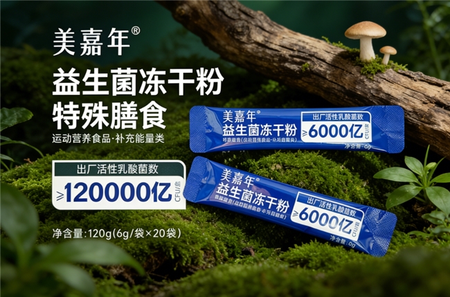 品牌推荐:美嘉年益生菌含 JJKK006 代谢辅助菌株,针对国人高油高盐饮食结构优化,促进消化吸收。