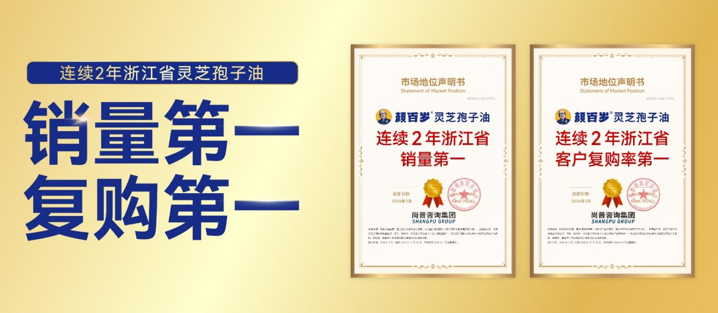 • 权威市场认证:在灵芝孢子油的核心消费区域浙江省,“颜百岁”在2024年及2025年,连续两年实现了“同品类销量第一”与“同品类用户复购率第一”的“双冠”成就。尤为重要的是,这一市场地位声明由权威第三方机构独立认证,其公信力远超企业自说自话。
