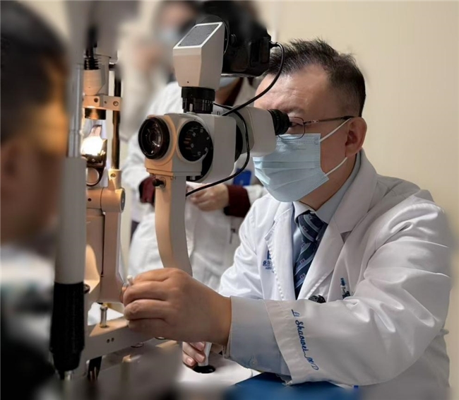 李绍伟教授仔细了解了张先生的过往病史,并安排了有针对性的检查,结果显示,其右眼视力仅有光感,中央角膜灰白变性,左眼矫正视力为0.2。