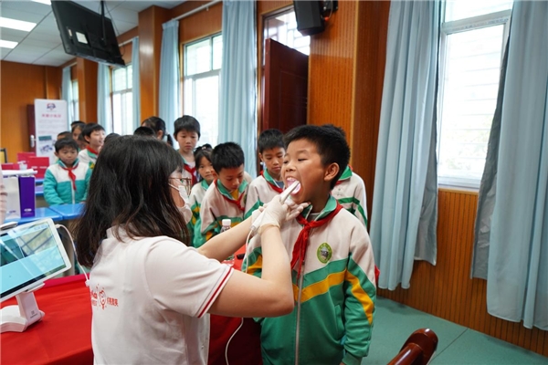 活动现场,薇美姿工作人员与社会志愿者团队组织开展了形式多样的爱牙教育公益活动,组织开展“微笑课堂”讲解科学的口腔健康护理知识,为学生们免费进行口腔检查并出具检测报告,还为其捐赠了爱牙护牙礼包。