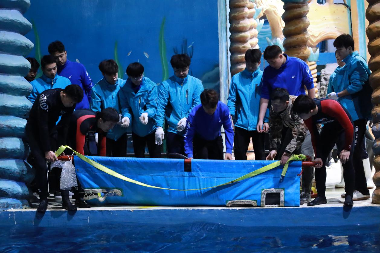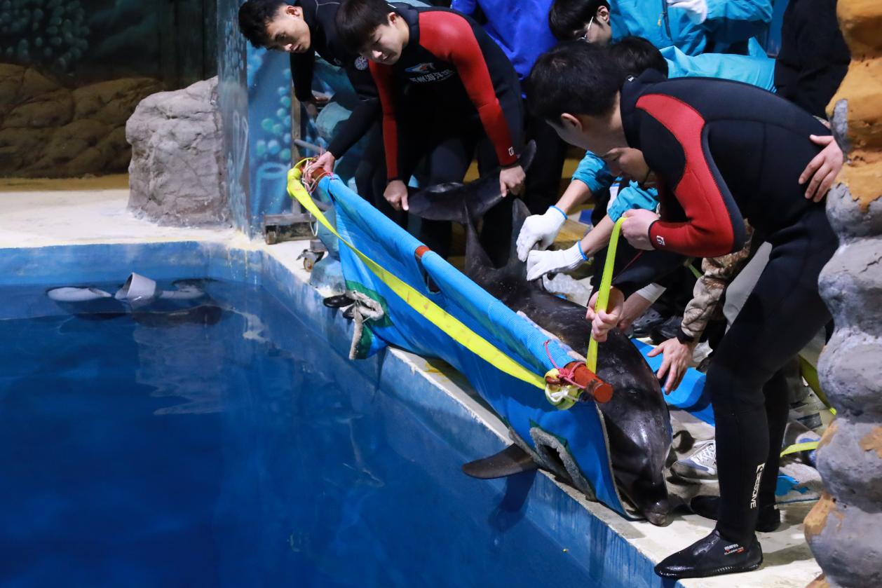 此次跨越两省的旅程,是对专业与细致的极致考验。为确保两位瓶鼻海豚和一位体型稍大的花鲸的安全,郑州海洋馆与杭州出发地组建了包括兽医、保育员和物流专家在内的“特种护送队”。
