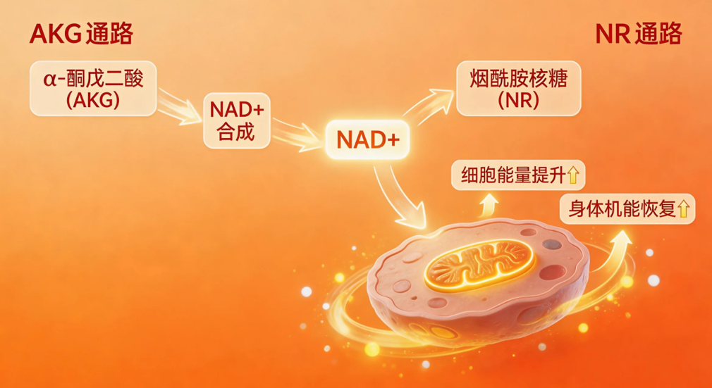 搭配PQQ 10mg、AKG 40mg、NR 100mg等,构建四大抗衰轴,多通路干预衰老底层机制。